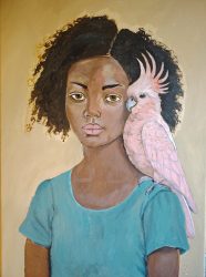 Vous pourrez y enchérir sur « Boules à facettes » , peinture acrylique et collage sur toile et « Charlotte au Loriquet », peinture acrylique et collage sur toile.