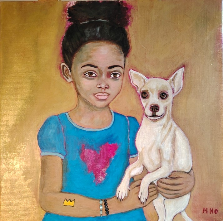 "Malia" peinture acrylique sur toile de lin 55x46 cm. (2023) encadré caisse américaine noire Disponible : 1900 euros