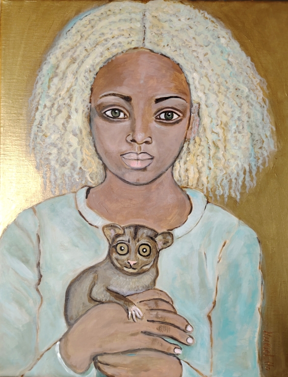 Acrylique et dorure sur toile de lin 55x38 cm Série les Belles Ames (2025). Disponible
